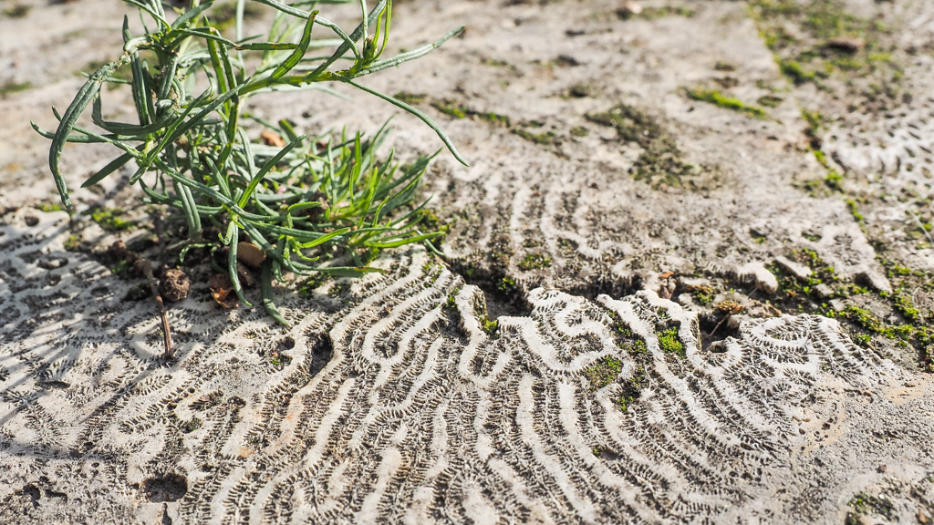 Koraalkolonies, gegroeid in een warmere zee, en geconserveerd in kalksteen