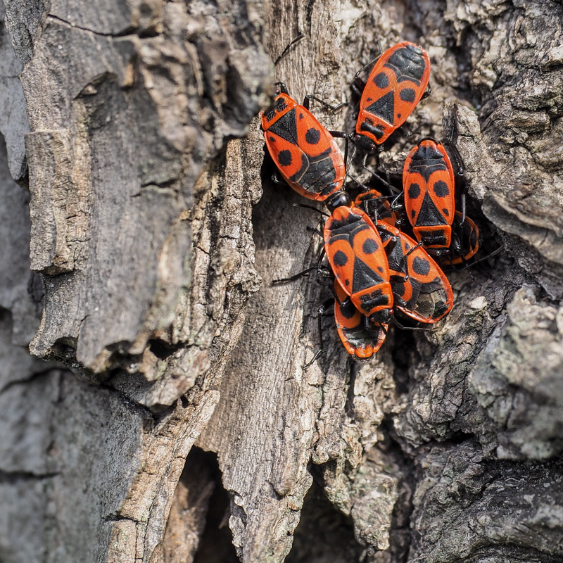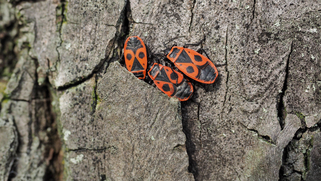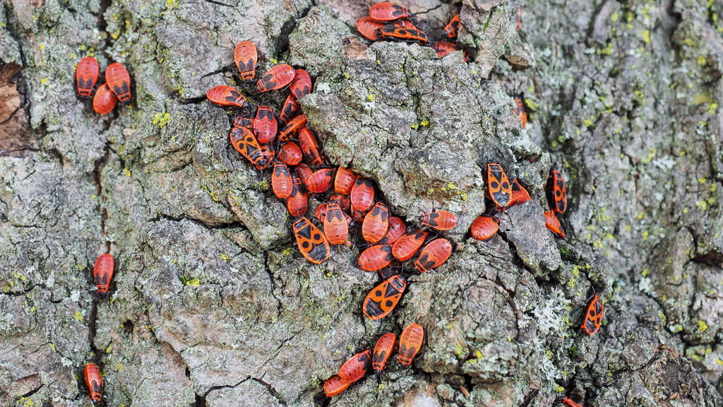 April: de volwassen vuurwantsen kwamen uit hun overwintering, klaar om