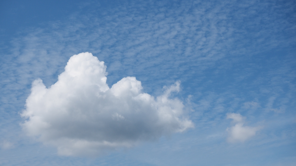 zulke witte stapelwolkjes onder die veel hoger hangende witte schapenwolkjes.