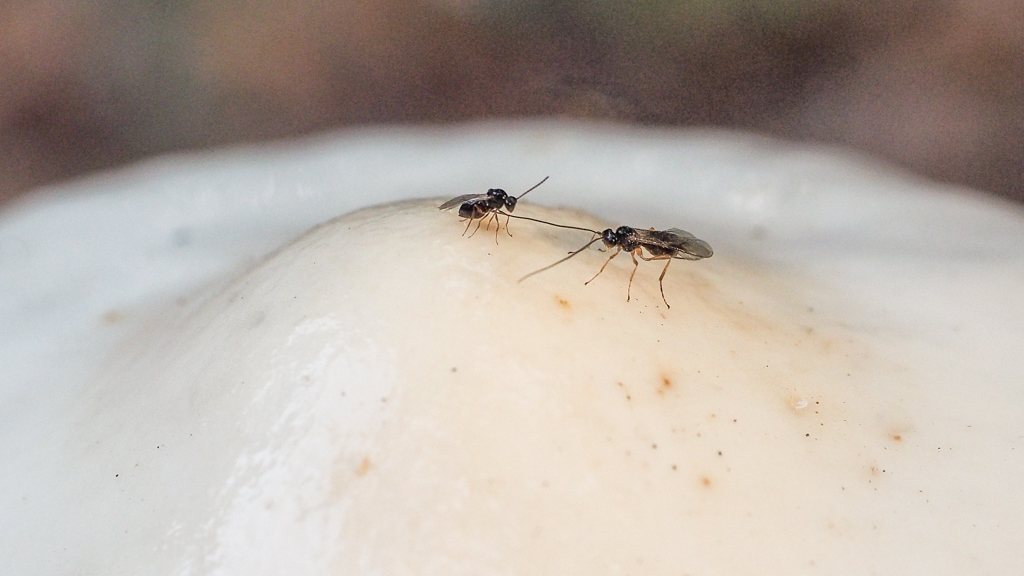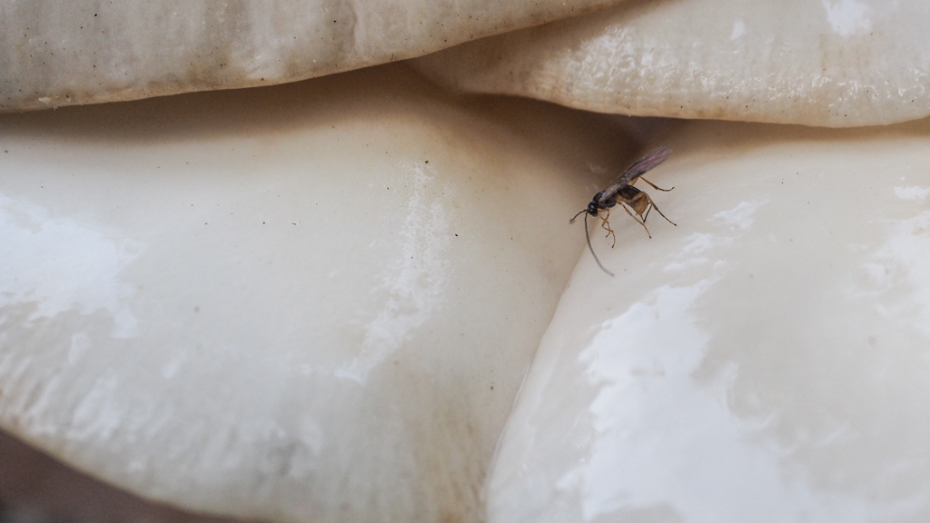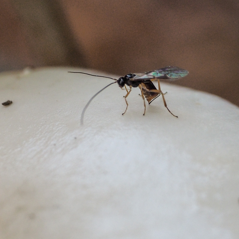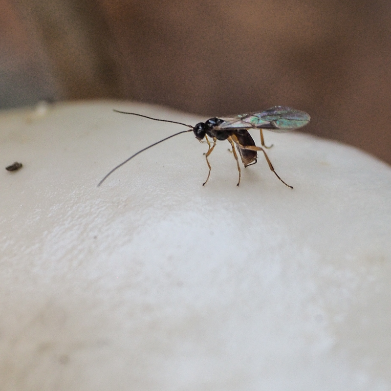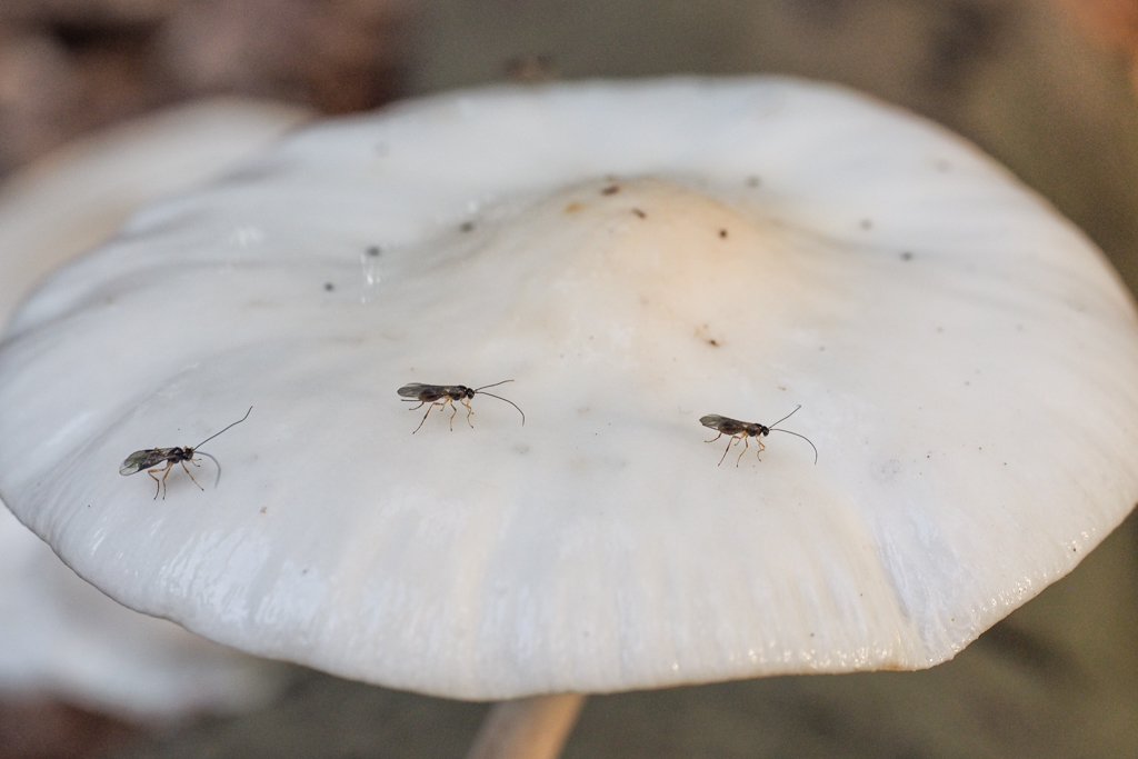 Klik hier voor meer vliegjes (en een sluipwespje) in paddenstoelen