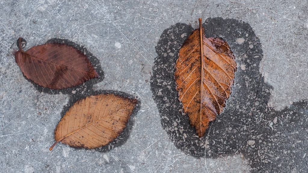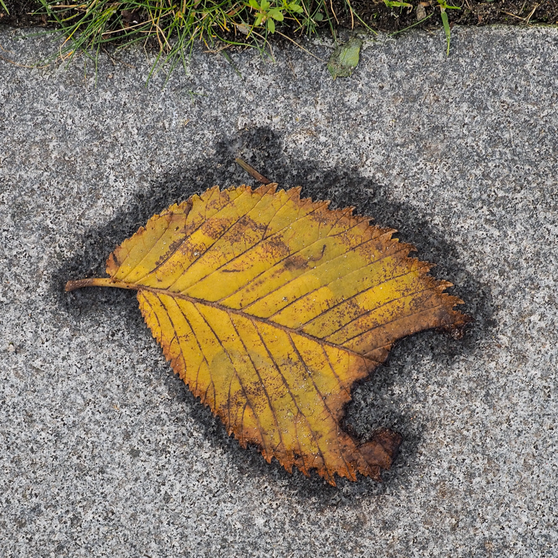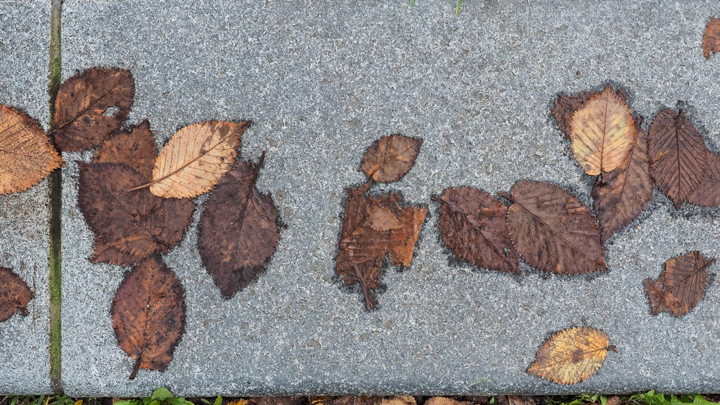 natte bladeren op drogende stoepen houden ieder nog even