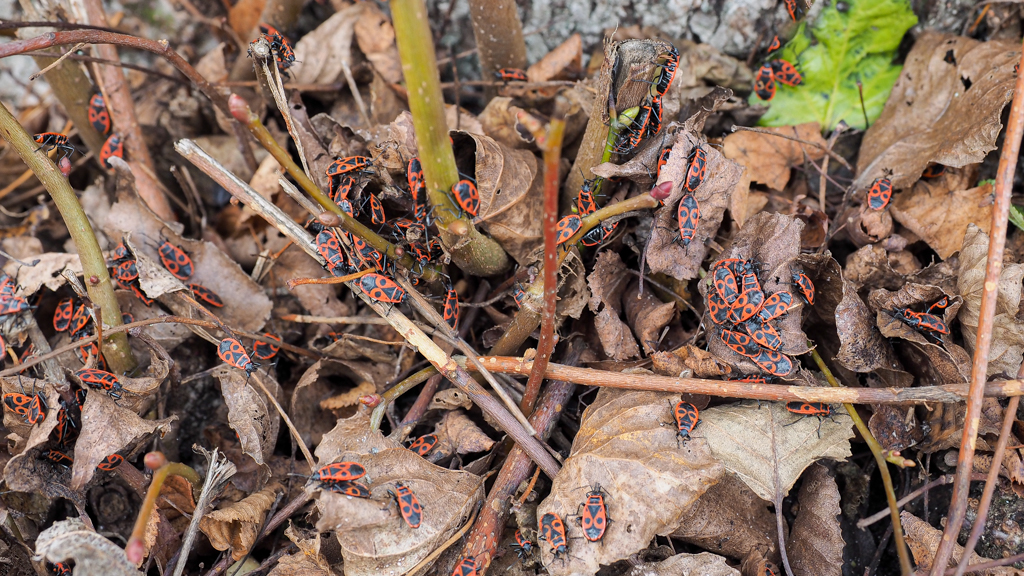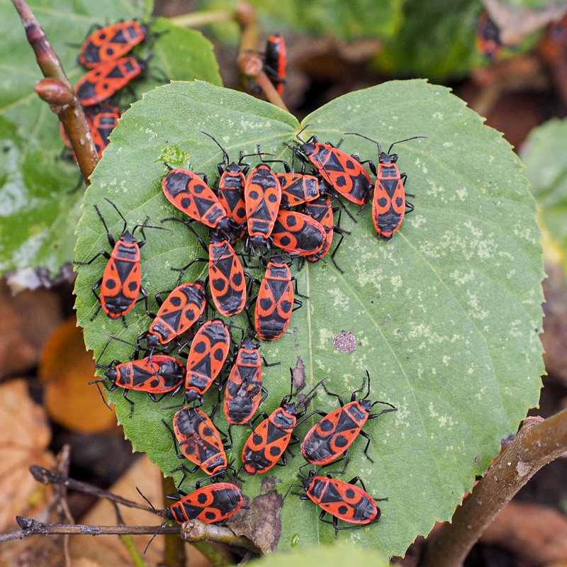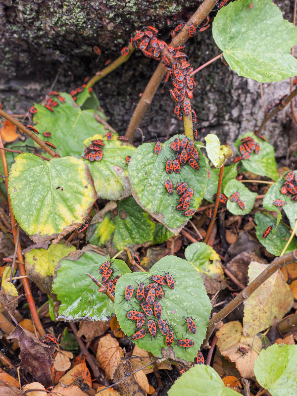 Klik hier voor de vuurwantsen in april, en in aug (met nog veel halfwas = nimfen)