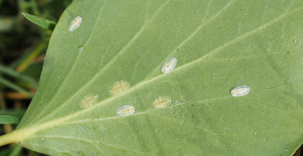 Wintergroen, werkend blad is een gewilde woonplaats voor deze schildluisjes: