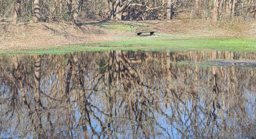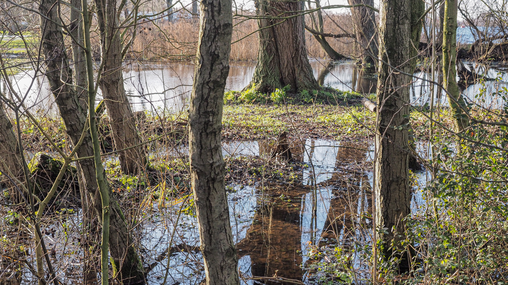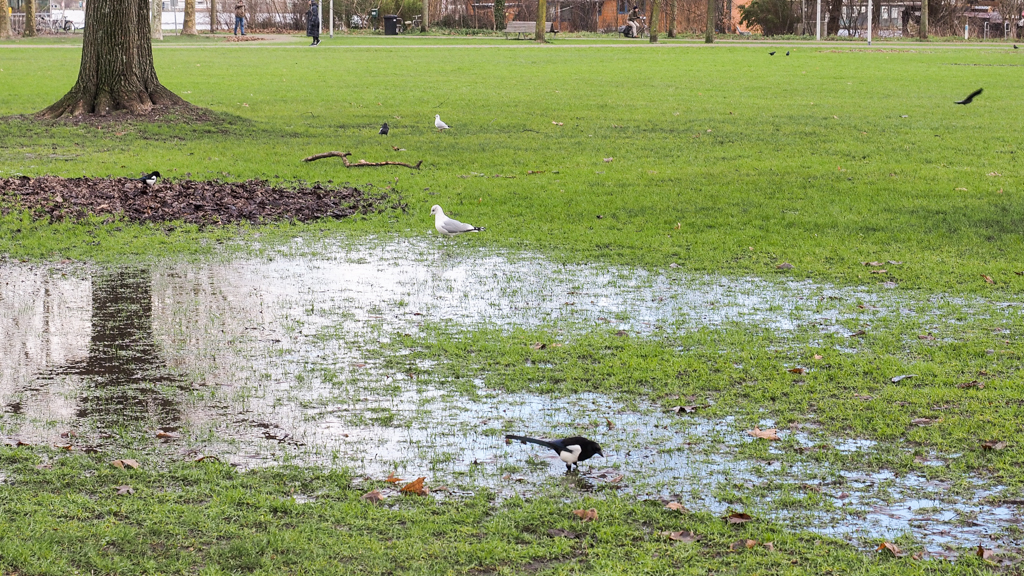 Zelfs de speelweide staat blank: alleen goed voor spetteren met laarsjes aan.