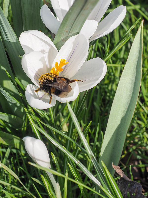 diep in de eerste vroegbloeiers duiken voor nectar = vliegbrandstof!