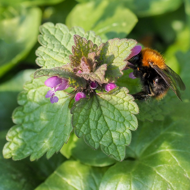 Kan ze, zo diep uit zulke smalle bloempjes (paarse dovenetel, hondsdraf)