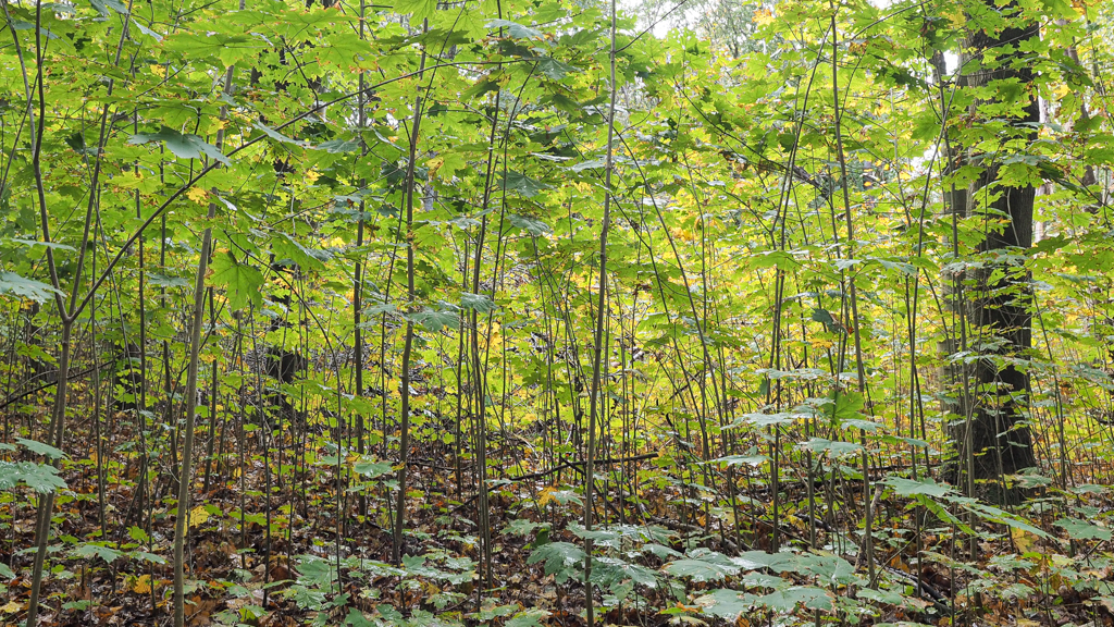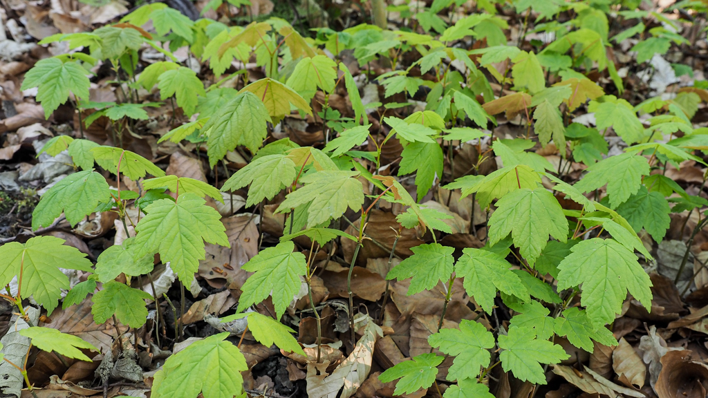 zij aan zij: als esdoorns zo talrijk kiemen en elkaar zo weinig wegconcurreren