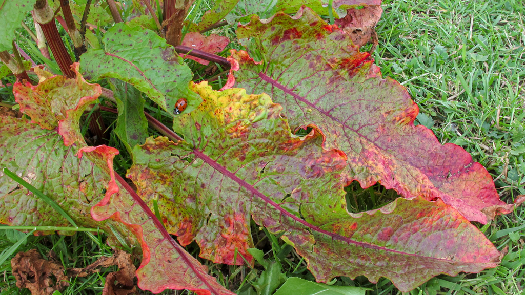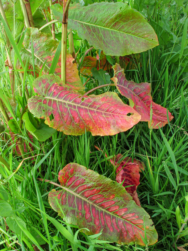 De soort: ridderzuring. De meeste planten hebben anthocyaan als afweer,