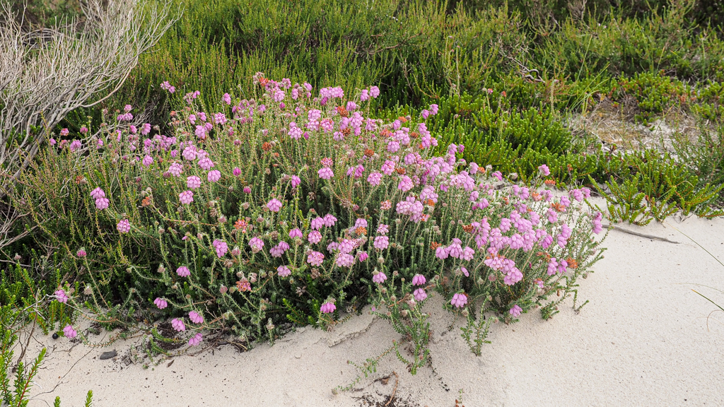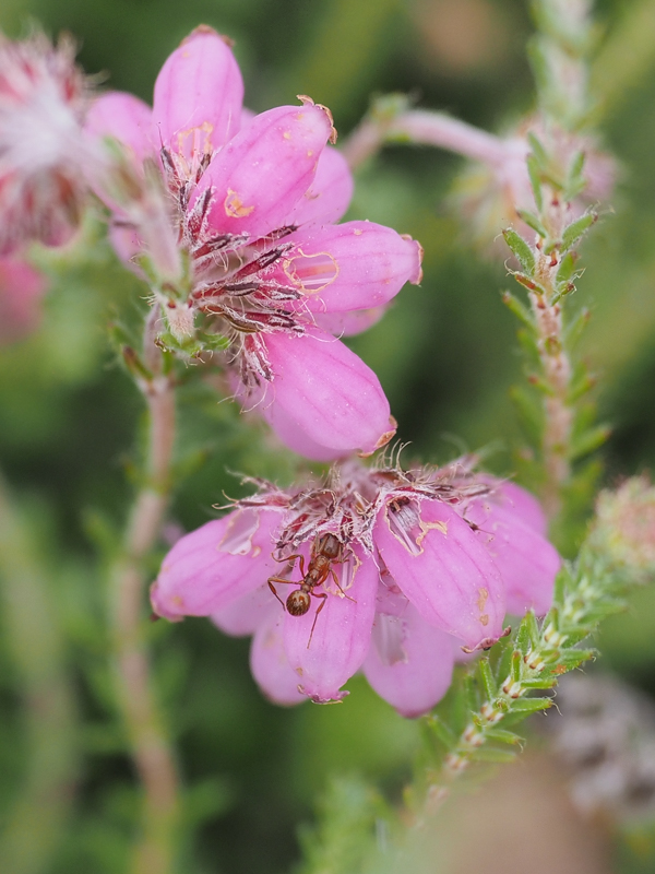 Dophei bloeit met kleine roze ‘dopjes’ met maar een smal tuutje naar buiten