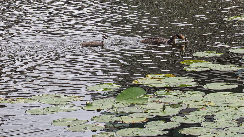 Amper volledig in de veren gaat hij aarzelend zelf op zoek naar voer: