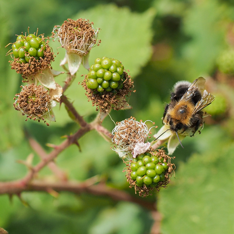 Braamstruiken bloeien bijna het hele seizoen door, en in elke bloem groeit