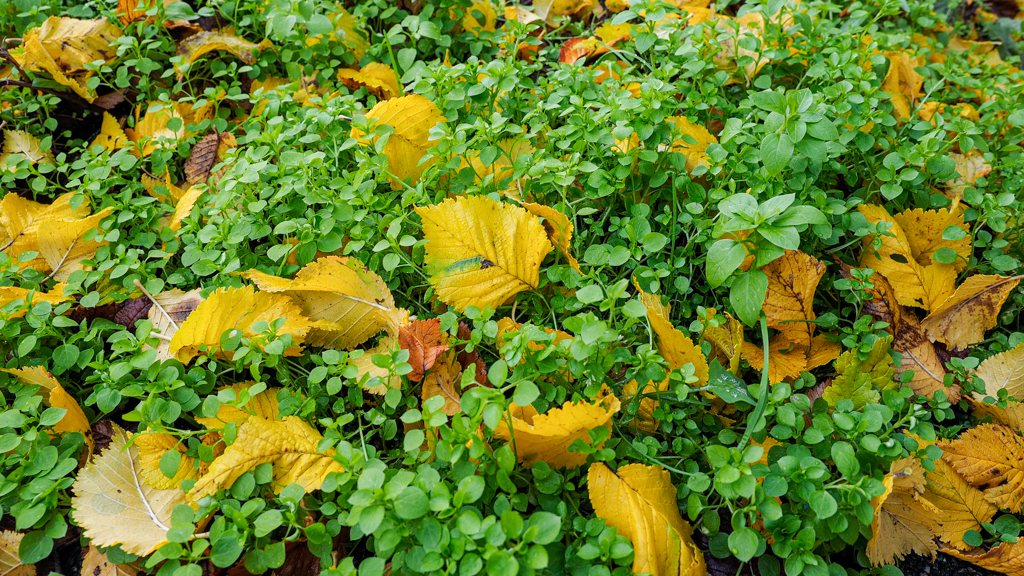 vogelmuur, gekiemd na de laatste keer maaien of schonen,