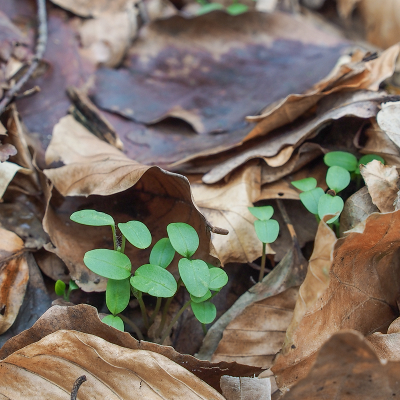 vóór zijn: heel vroeg kiemen en van diep onder alle dode blad vandaan