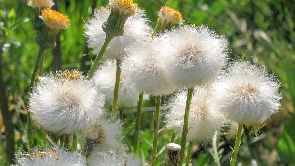 De vroegste bloeiers rijpen alweer uit: klein hoefblad draagt witte pruikenbollen