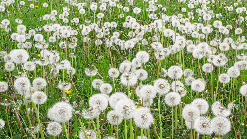 Ook deze paardenbloemen groeiden hun stelen hoog boven het gras uit om