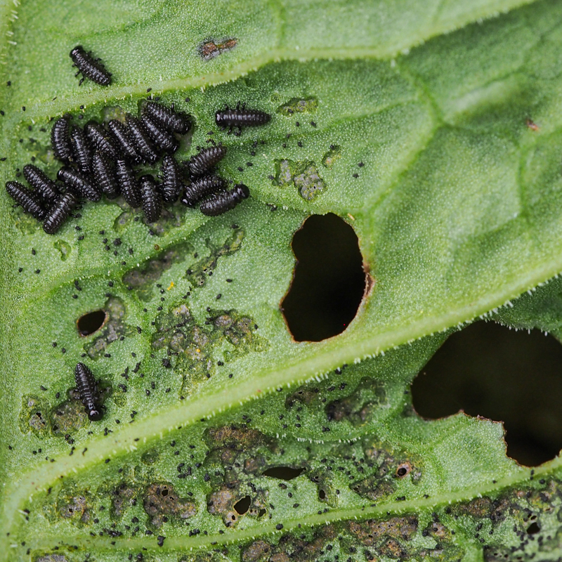 De jongste larven kunnen alleen nog wat bladmoes afschrapen maar na