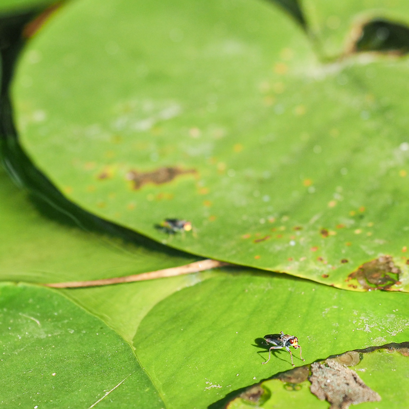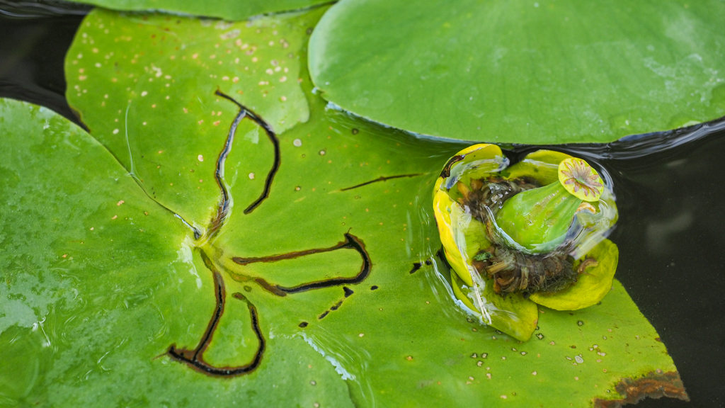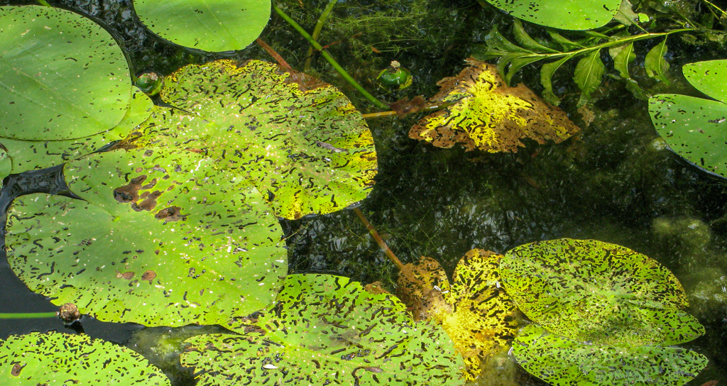 Wat wordt er geleefd op en in de bladeren van de gele plomp!
