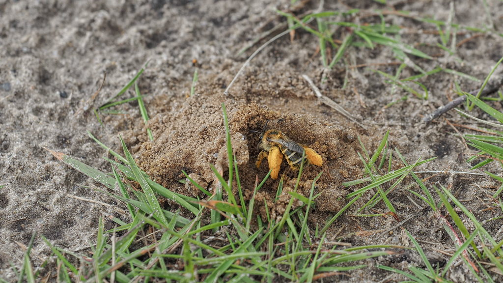 hier graven pluimvoetbijen hun diepe (zo’n 20 cm) gangen, met broedkamers.