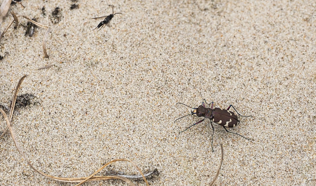 Bij zo’n zandloopkever is het hollen of stilstaan: doodstil, in de aanslag,