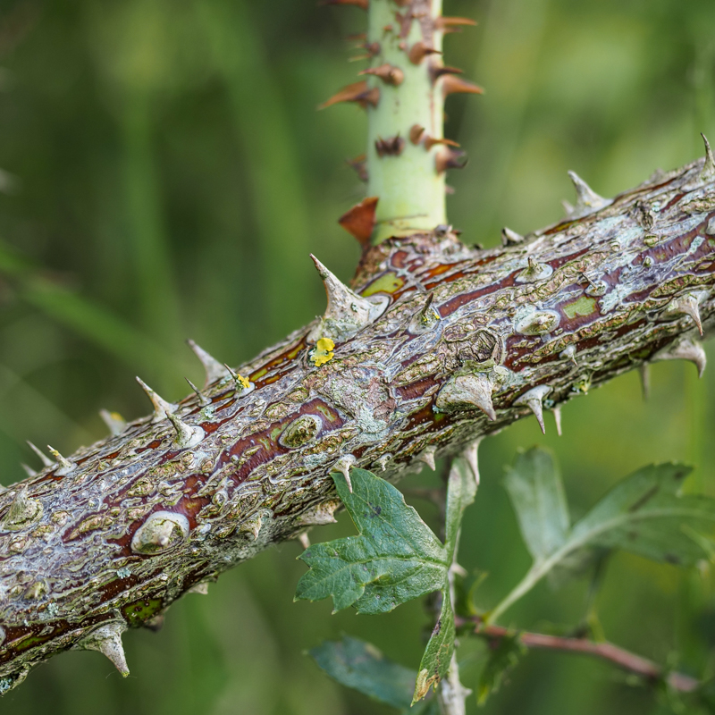 en meidoorn (links) en egelantier (rechts) beschermen zich met stekels: