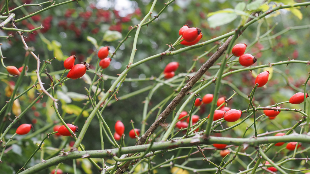 maar aan de kale loten rijpen de rozenbottels toch goed uit.