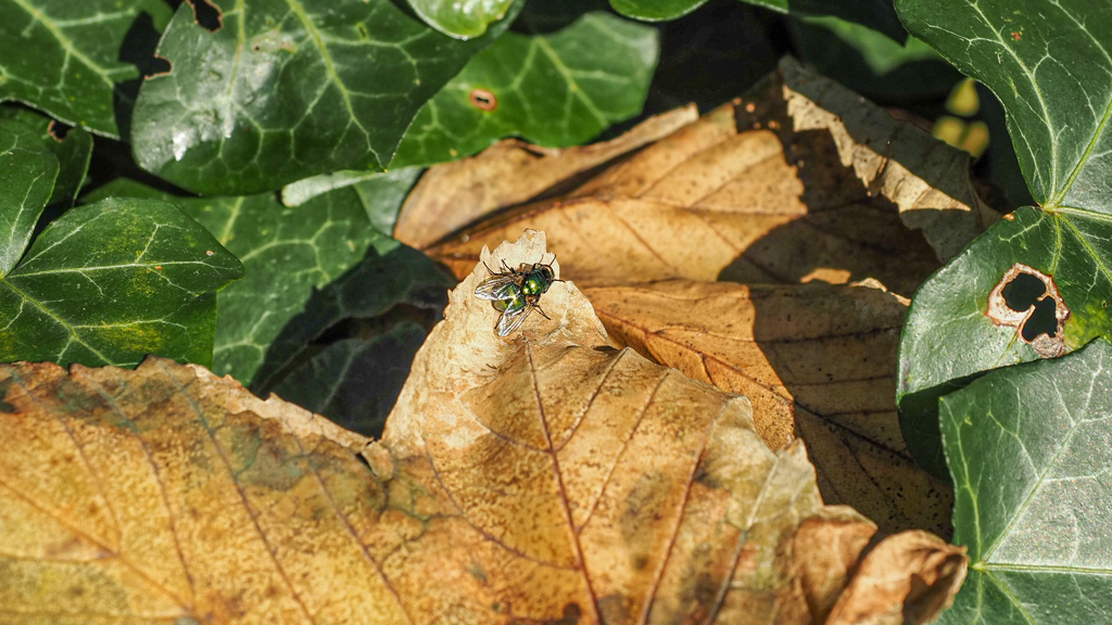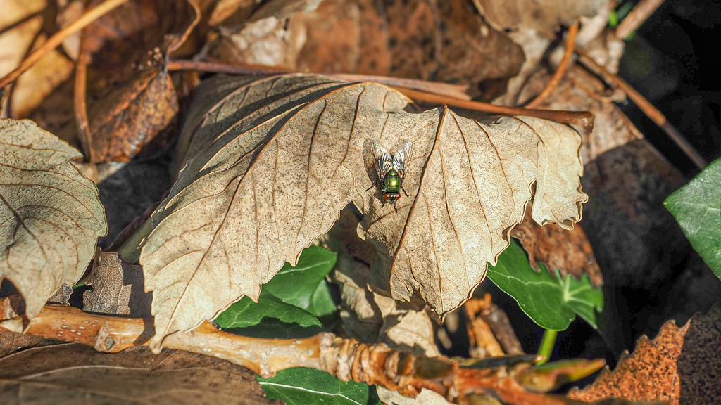 Vliegen proberen nog wat laatste zonnewarmte/-energie te vangen,