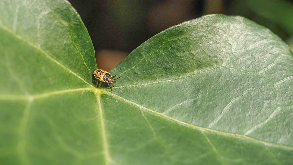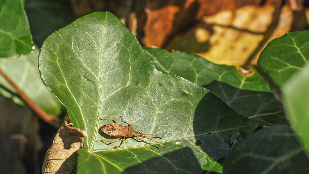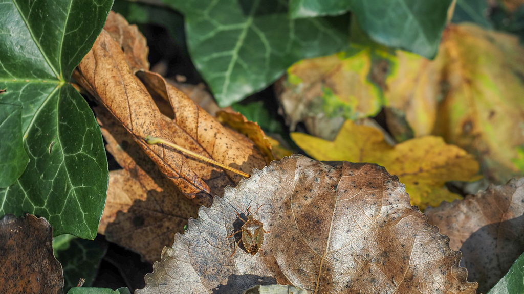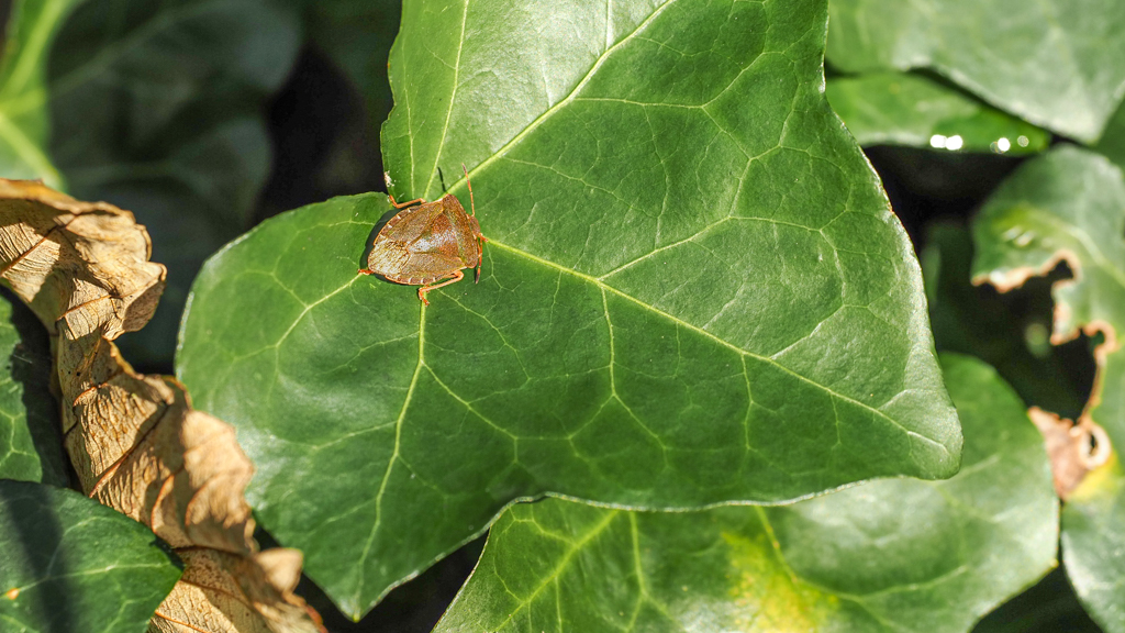 ook deze wantsen zoeken nog zonnegloed op glanzende bladeren,