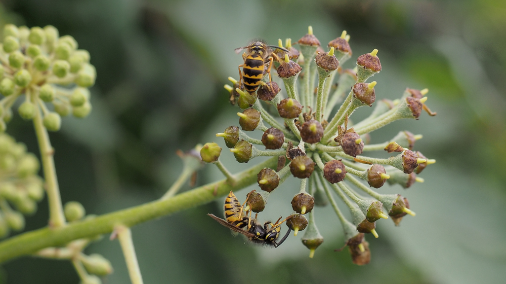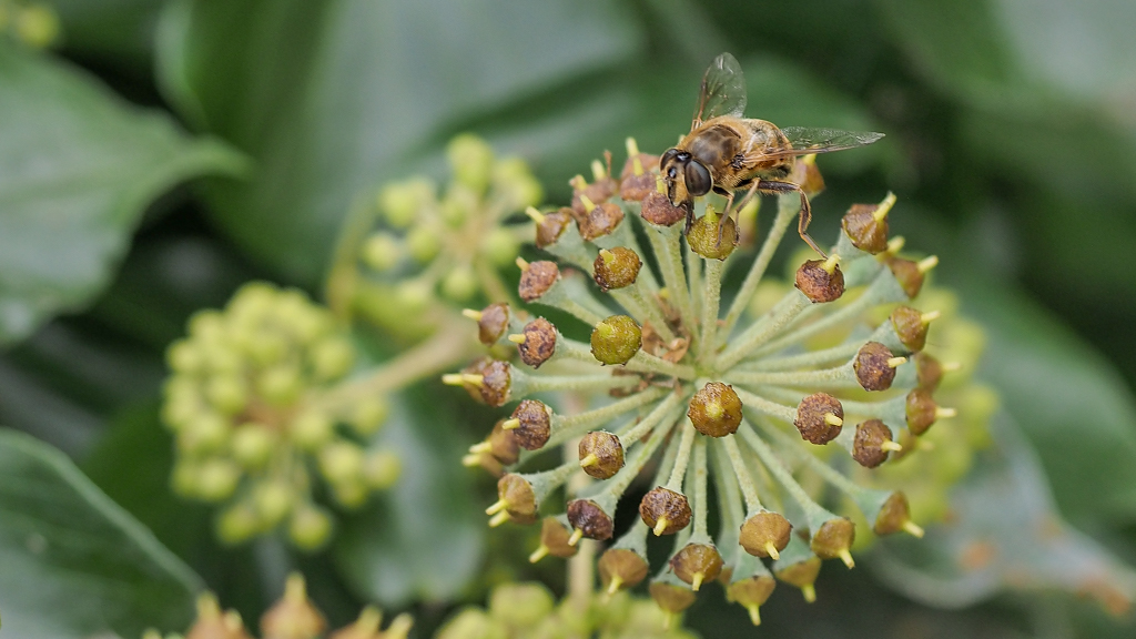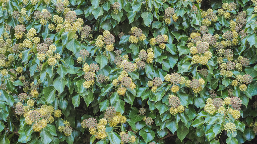 Als bijna alles is uitgebloeid begint klimop en gaat nog lang door (december..):