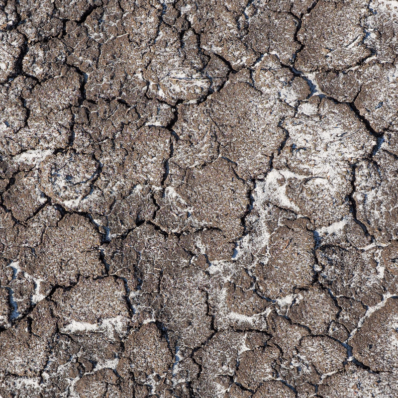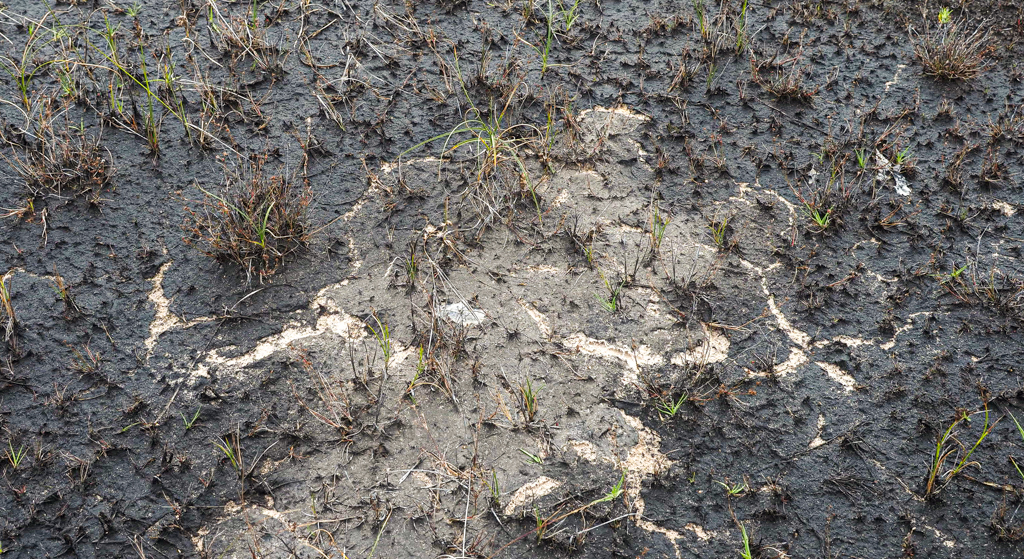 dan krimpt de donkere drab van rottende plantenresten tot grijzige korsten waar