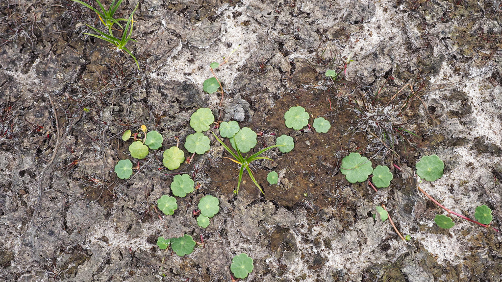 Deze waternavel klampt zich vast aan stukjes nog niet grijs verdroogd slib …